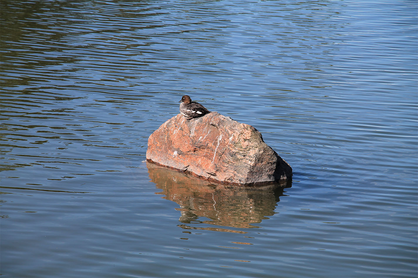 We then found a rock facing the sea where we could eat lunch. After that, we finished going around the island, with a few squirrels crossing our path.