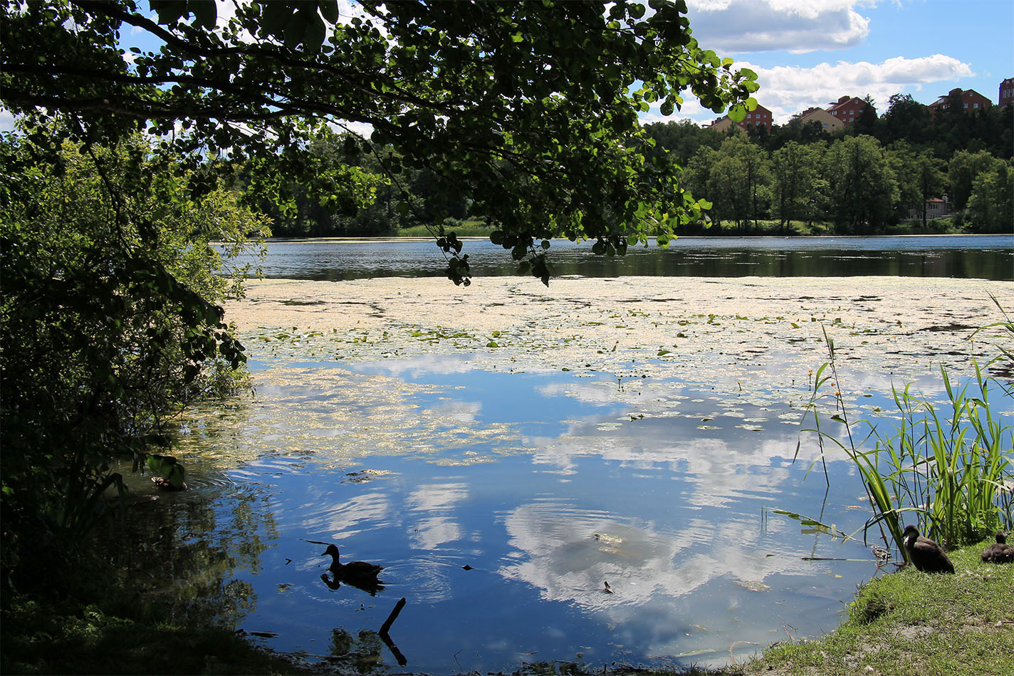 After leaving our bags, we decided to have a picnic nearby our home, near the lake named Rastajön. Tired from our very early (2 AM) awakening, we quickly settled on one of the many benches near the entrance. We were impressed by the number and variety of birds and ducks that lived all around the lake. And, the noise of all this wildlife moving around in the sky was so strong that it echoed throughout the whole park.