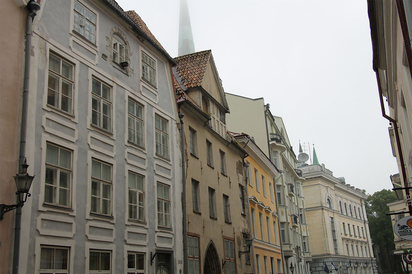 En effet, L’Estonie n’étant qu’à deux heures de la Finlande, nous avions décidé de découvrir ce nouveau pays le temps d’une journée. Nous avons débarqué au port de Tallinn, la capitale, il était 10h. Ce jour là, le temps était gris, et en arrivant devant notre premier lieu à visiter, l'Église Saint Olaf, celle-ci avait la “tête” dans le brouillard. Ce qui lui donnait cette impression d'immensité.