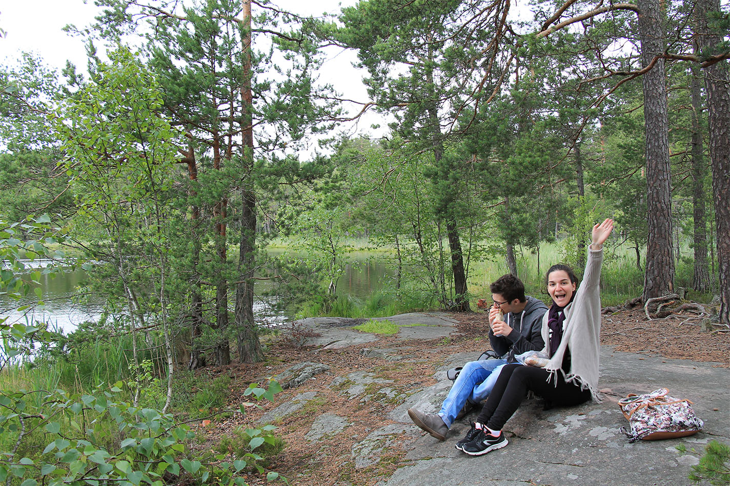 Un bus, un arrêt loupé et quelques kilomètres plus tard, nous voilà à la réserve naturelle de Törnskogens (enfin presque). Il était 11h30. Et comme nous avions loupé notre arrêt de bus, nous avons dû marcher un petit moment en longeant les bords de route. Mais, après tout, ça fait partie de l’Aventure.